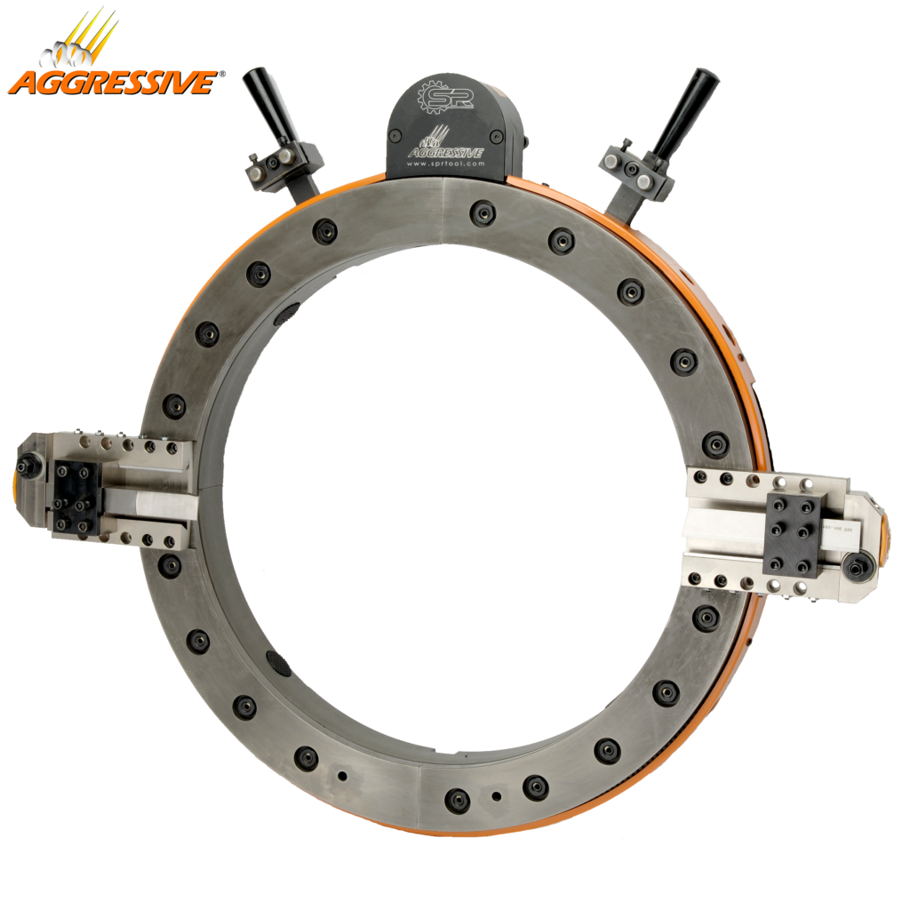 The Aggressive split frames are rigid, versatile, and operator friendly. Available in both steel and aluminum designs, these split frames allow for heavy cutting to achieve a decrease in cutting time. The Aggressive split frames can be used on thin wall or heavy wall pipe, flanges, 90’s and reducers. All Aggressive split frames have the following capabilities: